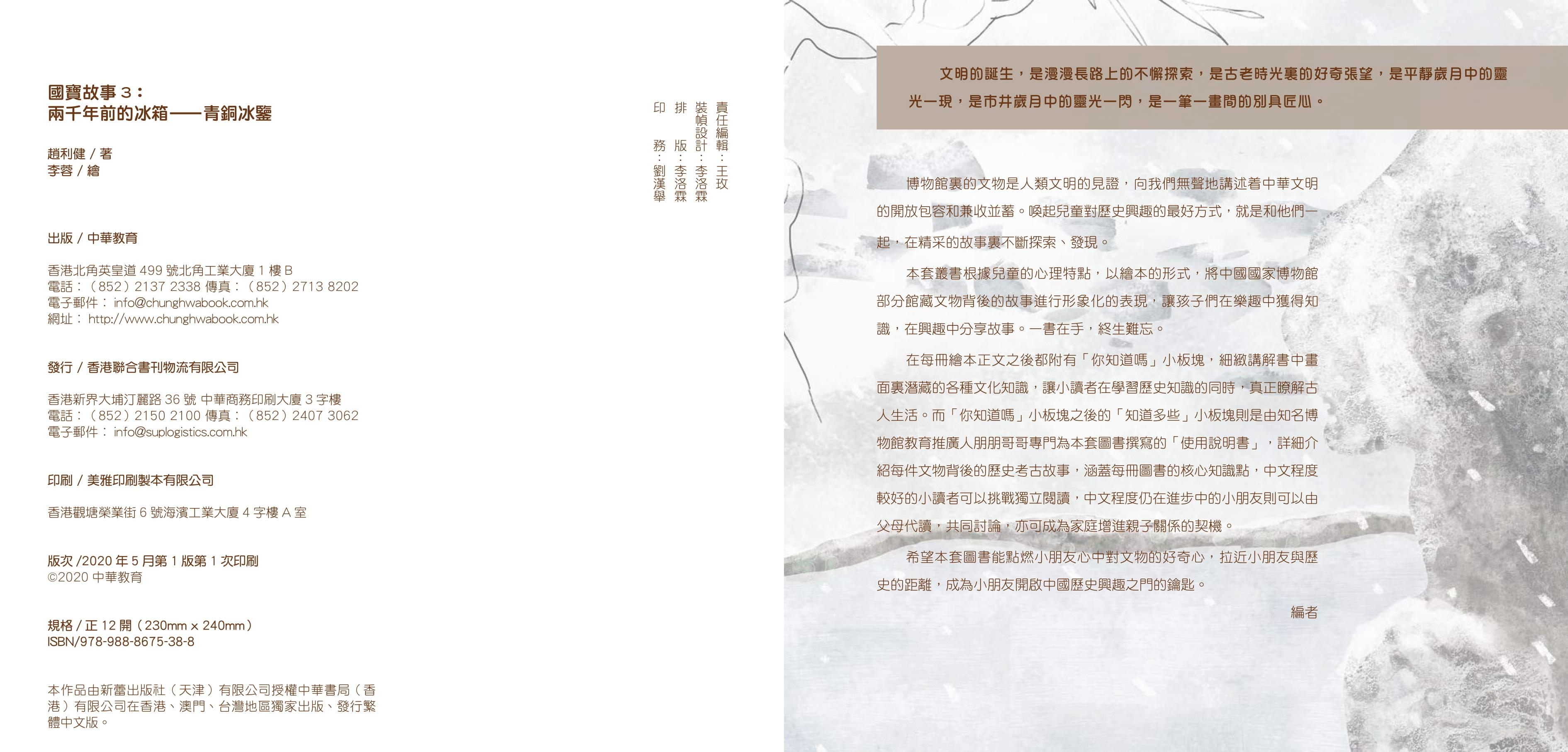 中國是一個禮儀之邦,中國人自古崇尚禮數,酒器也都大有講究。銅冰鑒,不僅是集實用性與藝術性高度統一的青銅酒器,也是世界上很早的「冰箱」,展現了中國人高超的技藝和智慧,該冊繪本講述了「青銅冰鑒」誕生的故事。