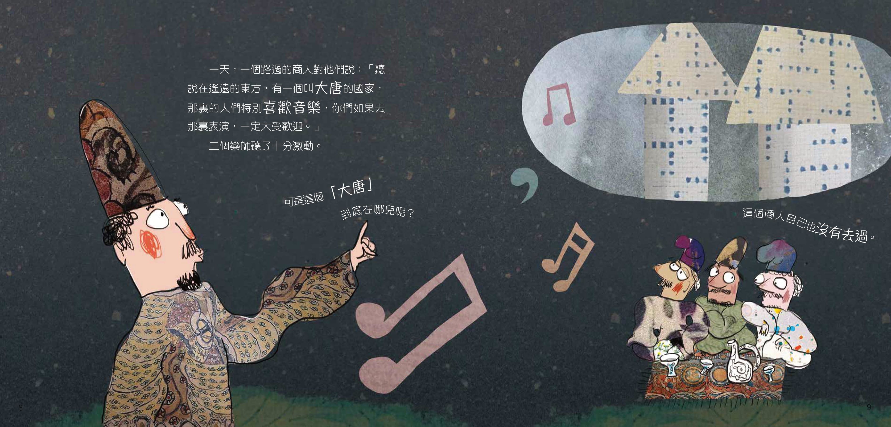 絲綢之路不僅是中西商貿之路,更是政治往來、文化交流的要道,該冊繪本通過講述幾位樂師不遠萬里來到唐都長安的一路見聞,展現了中西方文化的融合與交流,反映出共商、共享、共建的協作精神。