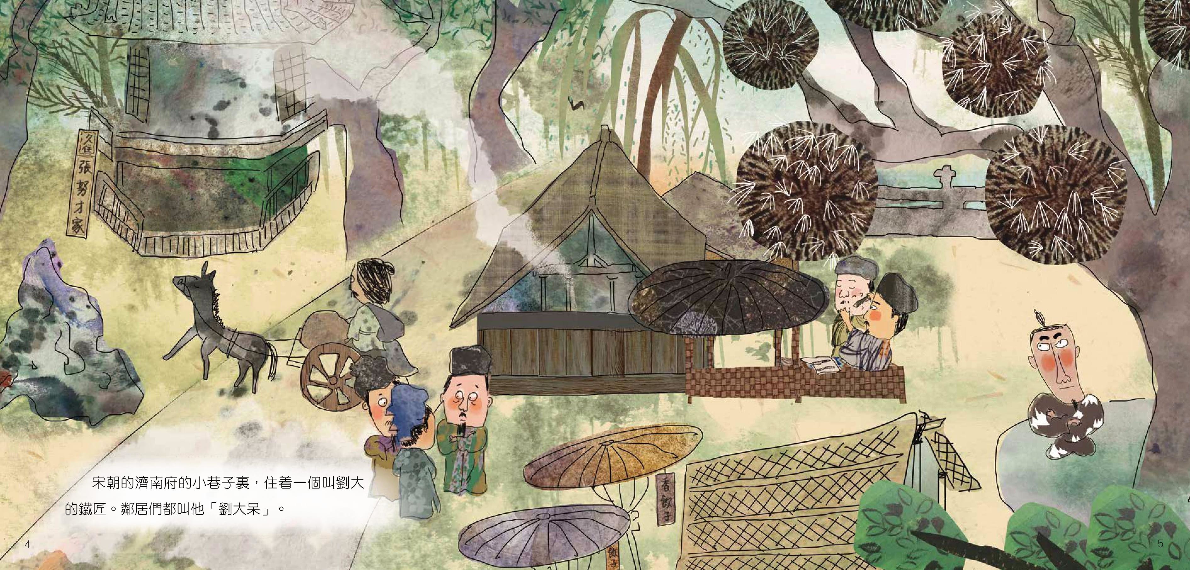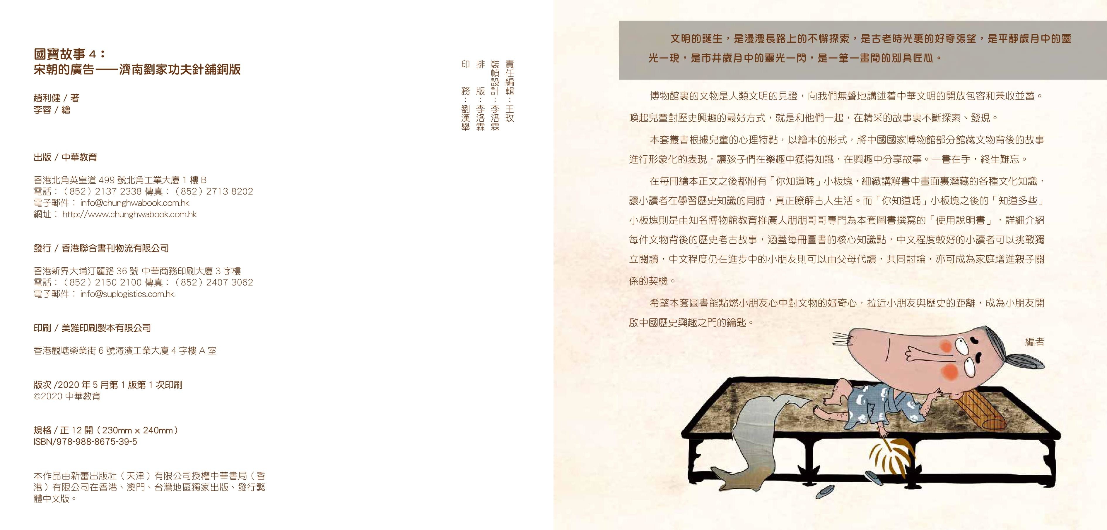 濟南劉家功夫針鋪銅版是目前已知世界上很早出現商標的廣告。繪本通過銅版誕生的故事,反映出宋代城市文化繁榮,市場交易無處不在,商品經濟空前活躍的繁盛景象。