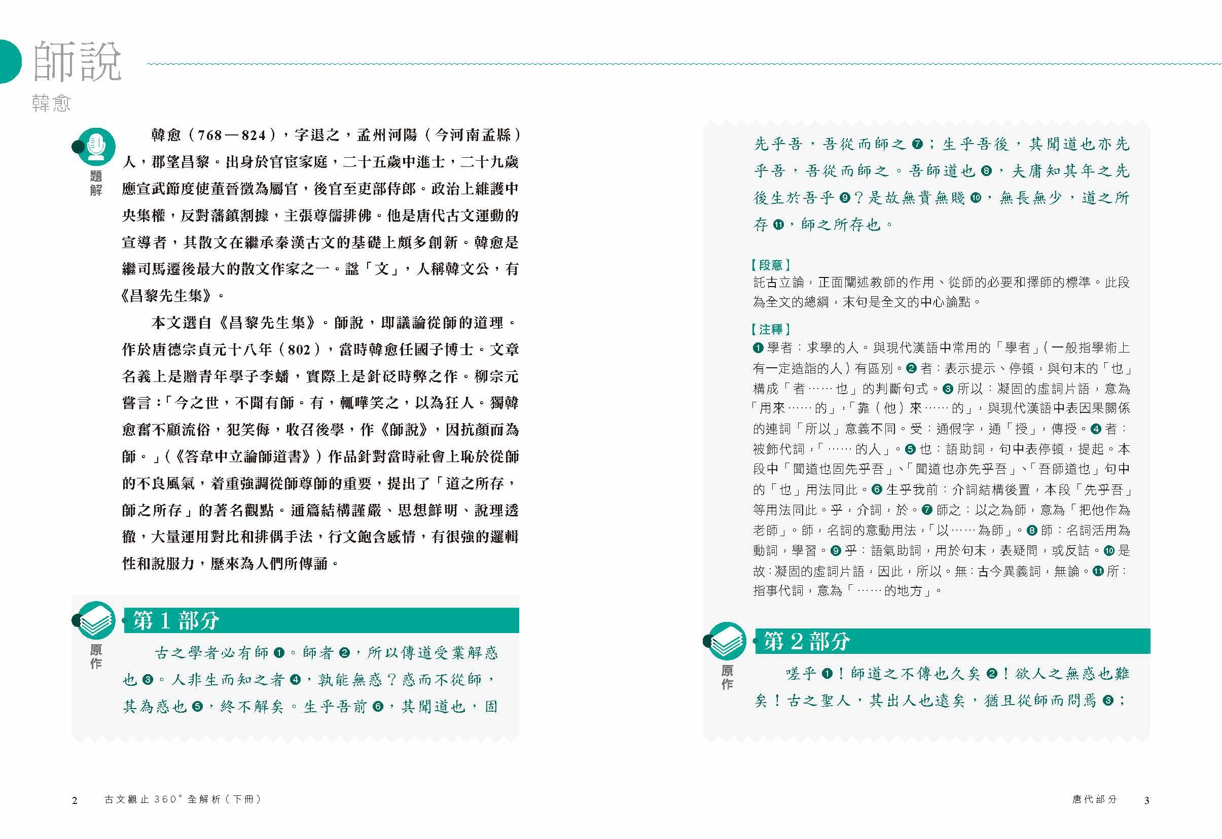 原作:按文意分為若干部分,詳加段意及注釋,解典故,補充文言知識。