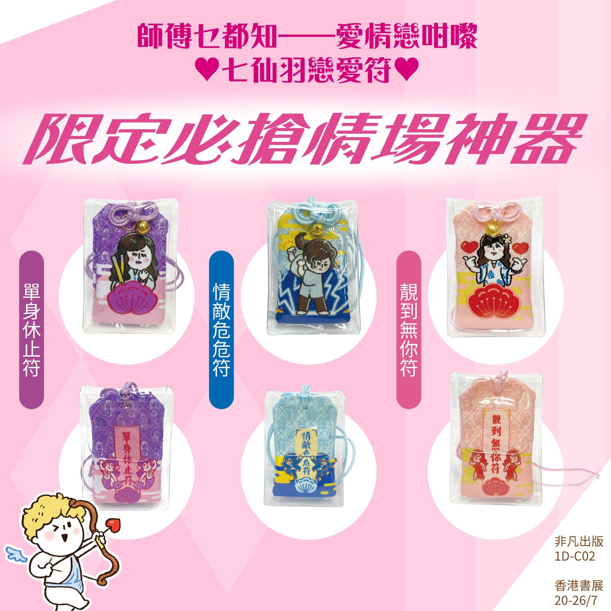 在打開這本書之前,可隨書加購的文創已經先聲奪人,三款印有七師傅Q版卡通肖像的「戀愛御守」,分別是「單身休止符」、「情敵危危符」與「靚到無你符」,不單止「食字」,其實亦呼應了本書的內容,就是愛情路上的不同進程!