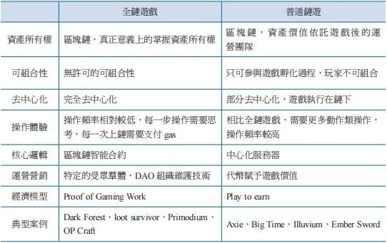 普通鏈遊:將遊戲內資產通過代幣與 NFT 的形式記錄上鏈;通過資產上鏈,實現孳息、自由交易、收藏、鏈上可組合、融資、社區、治理等多種玩法,其遊戲本身是在鏈下運行。