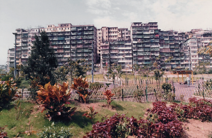 ▲1990年從城寨樓宇天台俯瞰老人中心。