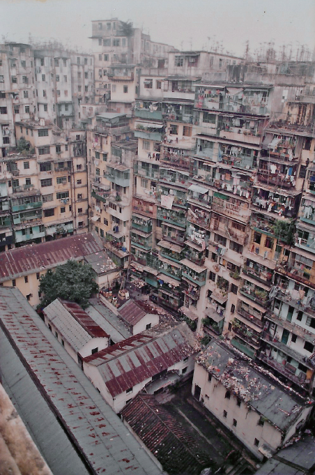 我因工作關係在1990年多次進入城寨,儘管外面陽光猛烈,裏面卻暗無天日,甚至有水滴下。有次走上天台俯瞰城寨中央的老人中心,其前身是九龍司巡檢衙署,一直租予教會使用,是城寨內唯一沒有興建高樓的地方。