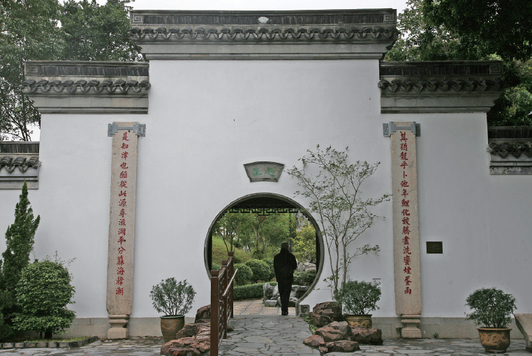 ▲龍津義學門聯現嵌在九龍寨城公園「魁星半亭」的月洞口兩側。