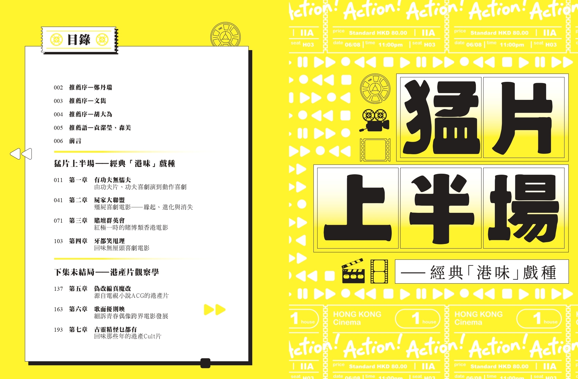 本書內容大致分為兩部分,第一部分名為「電影上半場」,回顧四種香港電影潮流的演化,包括功夫喜劇、殭屍喜劇、賭博鬥智片及無厘頭喜劇,從中可看到香港電影人如何在同一個類型片種中,創作出不同的延續或變奏。第二部分則是「下集未結局」,從改編受歡迎的漫畫與電視節目、青春偶像片到香港的Cult片(邪典電影)為切入點,觀察一下香港電影在題材方面的創作靈感與來源。