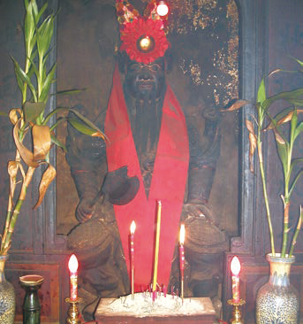 元朗舊墟大王古廟的車公像手握斧頭,非常威武。
