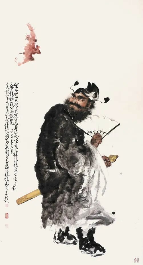 先生厚愛他的學生,曾多次為我們的畫作題詩題字。他的題字寓意深刻,耐人尋味,切中題旨。1981年我曾畫了一幅長臂猿,先生欣然補上秋藤並題詞,寓意萬里鄉心。1984年,我創作了一幅《鍾馗圖》,先生看了後感到畫面較空,於是補畫了一隻翩翩下來的蝙蝠,與怒目圓睜的鍾馗兩相對應,意為驅邪納福之意,小小的蝙蝠為畫面增添了生氣、靈動,先生還感到不夠,又在其旁題了字。這不僅是一件簡單的畫作,而是體現了先生對學生的關愛、扶持。學生每當有佳作,先生看到都欣喜題字予以鼓勵。