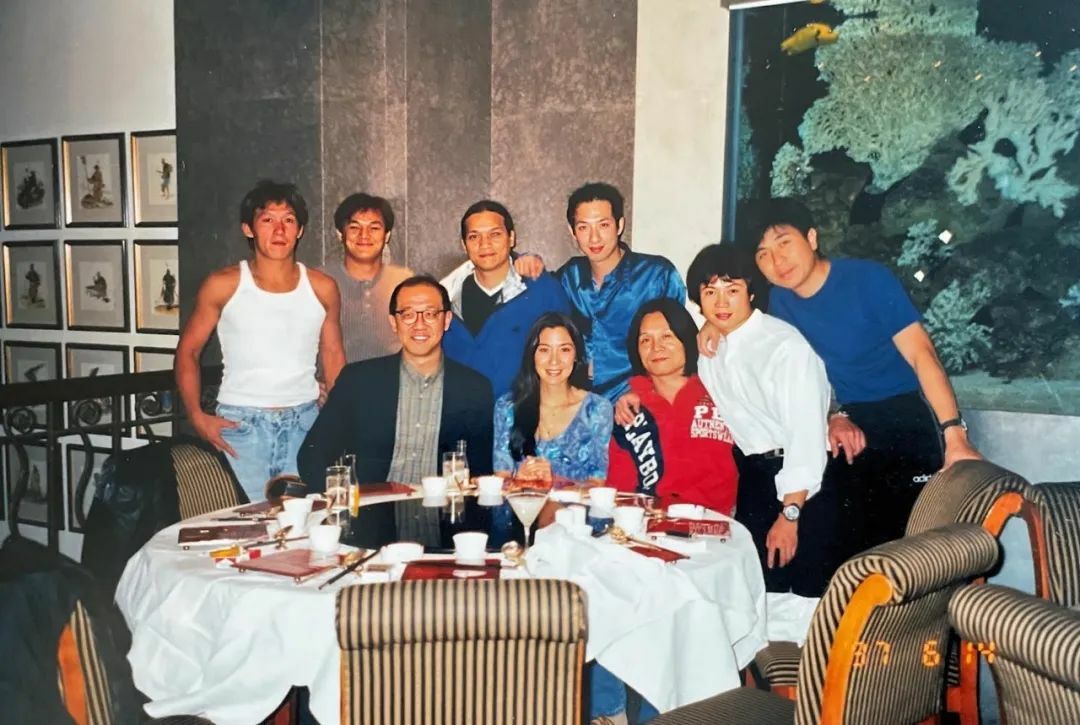 一九九七年六月十四日,我到倫敦《明日帝國》拍攝現場探楊紫瓊、郭追的班(前排從左到右為我、楊紫瓊、郭追),其他人員為郭追團隊的武行。在這部戲中,楊紫瓊成為了第一位擔任女主角的華人邦女郎。