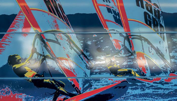 ▲「風之后」李麗珊在風帆上逐浪摘金的英姿,也記錄在奧運站的壁畫上。