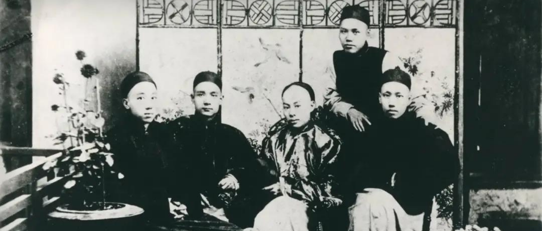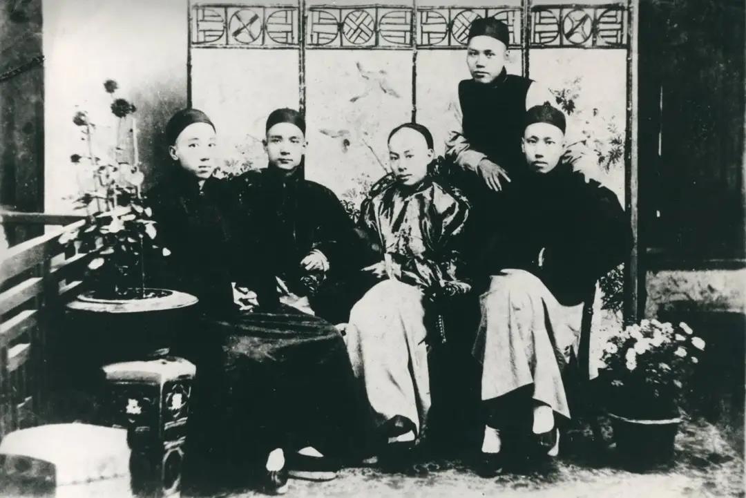▲前排為四大寇(左起楊鶴齡、孫中山、陳少白、尢列),後立者為關景良,約攝於1888年西醫書院三樓。)(圖片來源:孫中山史蹟徑)
