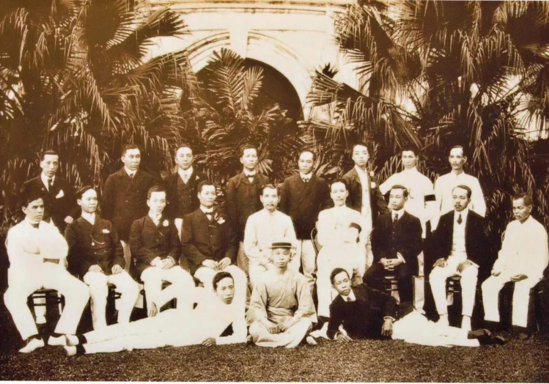 ▲1907年前後,尢列(右四)與孫中山及其他同盟會新加坡分會會員攝於晚晴園。(圖片來源:National Collection)