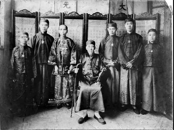 ▲老年尢列與家人合照,約攝於1935年前後。從左至右為幼孫尤嘉伊、次孫尤嘉從、兒媳陳麗荷、中坐者為尢列、嗣子尤永昌、長孫尤嘉炎、三孫尤嘉博。(圖片來源:尤迪桓、尢曾家麗家藏照片)