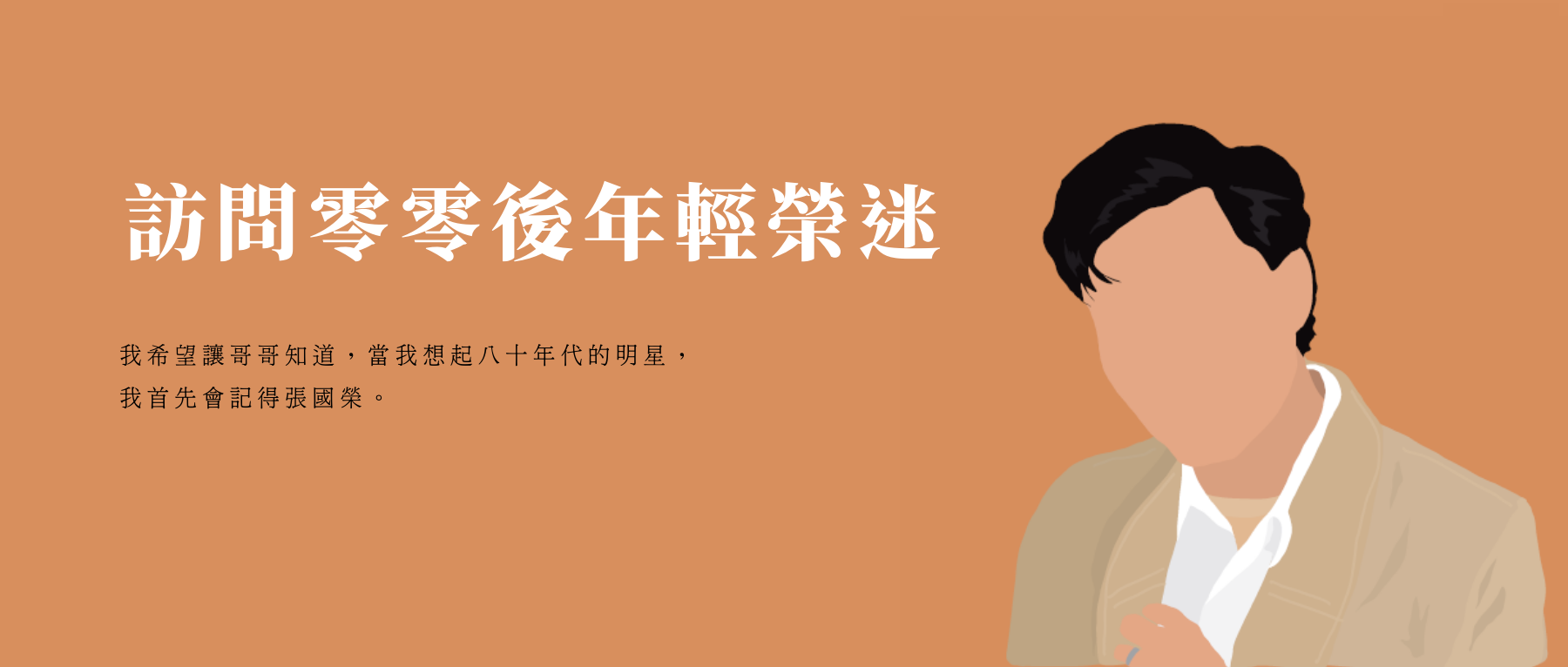 EY:我自己也在社交平台開了一個帳號向同輩推介哥哥。一開始純粹是為了有一個平台去抒發我對他的熱愛,以及記錄一些我喜歡他的路途上所發生過的事,之後我才意識到,因為這個專頁我認識了很多和我一樣喜歡哥哥的同輩,當中好些甚至成為了朋友,一起去看有關哥哥的展覽。夜闌人靜,當我想起哥哥的時候,我也會寫一些我對哥哥的感受,除了讓外界的人能夠看到,我也希望讓哥哥知道:「當我想起八十年代嘅明星,我會記得張國榮。」我一直也愛着哥哥,我會想將他的所有事,把他的精神延續下去。一開始以為我已經算年輕了,誰知道通過社交網站,我認識了更多比我年紀更小,也喜歡哥哥的人,最小的只有十二歲。我覺得歌迷前輩們的分享也非常重要,有時候從網上見到他們分享一些和哥哥之間的故事,我也能從中更了解哥哥。