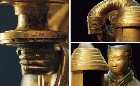 1968年,在河北省滿城縣城西三華里的陵山上,先後發現了兩座漢墓。竇綰是漢文帝皇后竇氏的姪孫女。當墓葬中散落的銅構件被重新組合後,擎燈侍女安然沉靜的表情從塵土中浮現。銅燈內外刻記的多處銘文講述着它經歷的複雜流轉。「長信尚浴」,這盞燈曾在長信宮的浴室裏使用,長信宮燈由此得名。這些銅燈點燃過漢代的暗夜,映照出人心美麗的憧憬。層出不窮的樣式中,釭燈最為奇妙。釭燈造型多為動物或器具,長信宮燈是唯一已發現的人形釭燈。