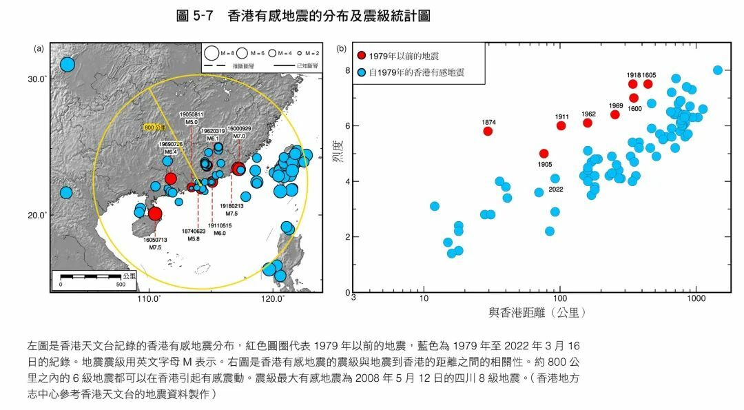 ▲《香港志》有關香港有感地震的統計圖。(圖片來源:《香港志:自然 自然環境》)