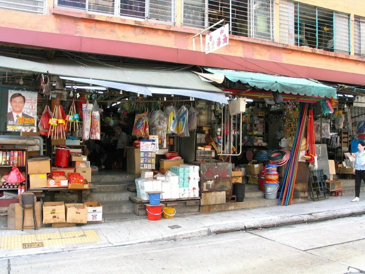 ▲徙置大廈地下用作民生必需的商業用途,如商店、士多、肉食公司、菜市場等。(攝於2003年的石硤尾邨)