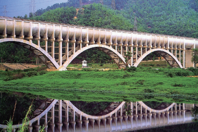 ▲改造工程建成旗嶺、樟洋、金湖三座現澆無黏結預應力混凝土U型薄殼渡槽,在世界同類型渡槽中規模最大。圖為旗嶺渡槽。