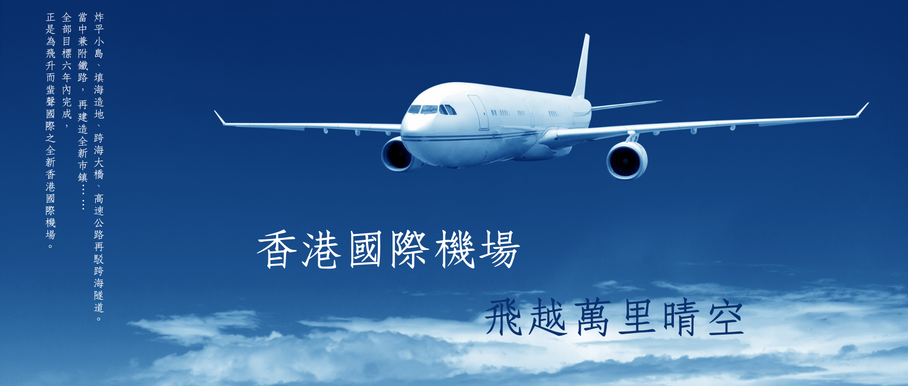 創新、靈活、能屈能伸、不屈不撓正是香港能由一個荒涼漁村變為國際大都市的精神,不論文化藝術、民政設施、生活社區和交通基建等多項建設,都能夠帶領市民生活進步和美滿。香港國際機場不單提升香港的國際競爭力,讓香港能夠站於世界最前,成為國際樞紐,不但讓港人能夠自由飛越國際,更能夠讓世界不同的香港人利便回家。